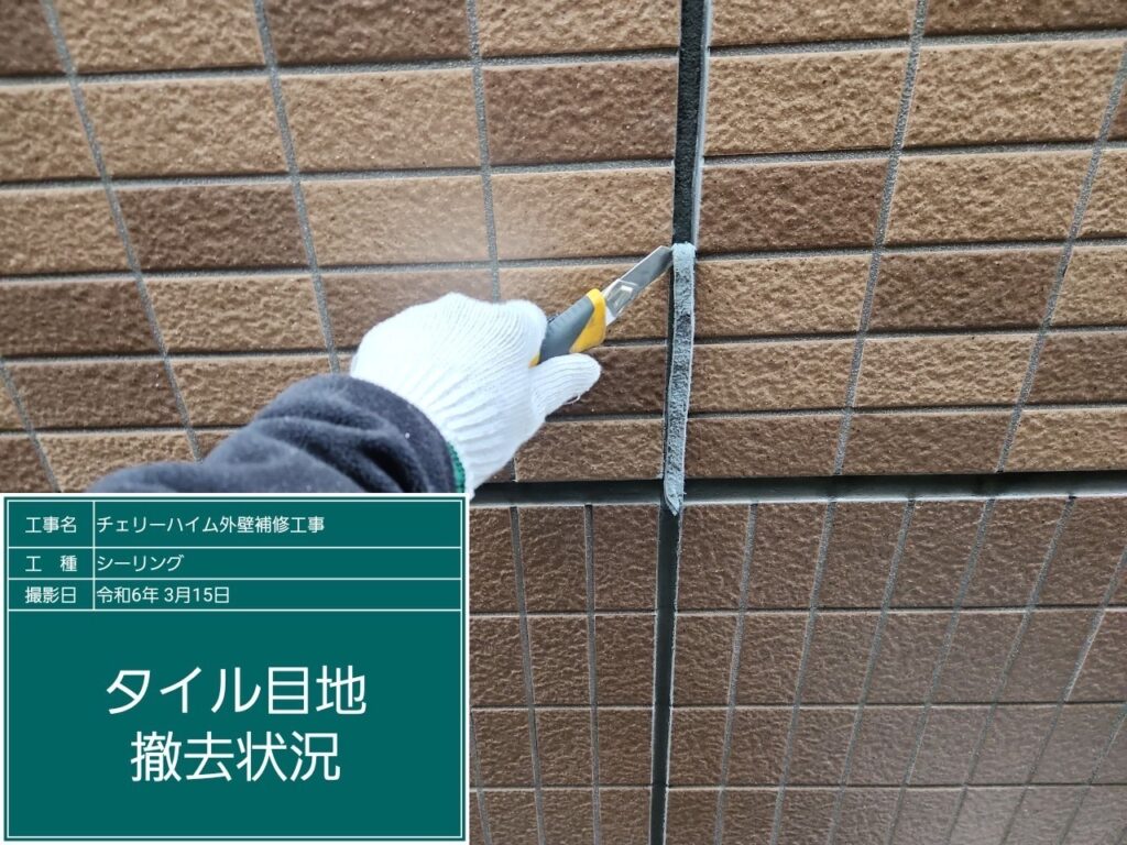 撤去後は、目地内部の清掃や下地の状態確認を行い、施工できる状態に整えます。